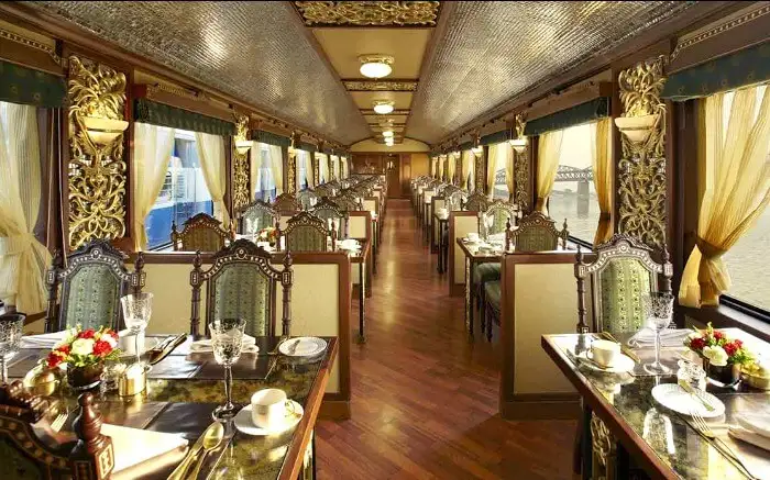 Escape to a realm of tranquillity aboard the Deccan Odyssey. This luxury train meanders through the scenic landscapes of Maharashtra and Goa, revealing the hidden treasures of the region. From the ancient caves of Ajanta and Ellora to the sun-kissed beaches of Goa, every stop on this journey is a testament to India’s diverse heritage. Immerse yourself in the train’s lavish interiors, savour delectable cuisine, and unwind in the comfort of your elegant suite. The Deccan Odyssey promises an odyssey of luxury, serenity, and cultural exploration.